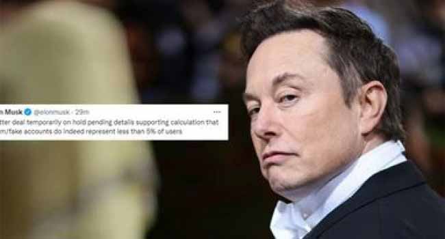 টুইটার কেনা আপাতত স্থগিত রাখছেন ইলন মাস্ক। তিনি নিজেই টুইটারে জানালেন সেই কথা। ইলন জানান, টুইটার ডিল সাময়িকভাবে মুলতুবি রাখা হয়েছে। স্প্যাম এবং জাল অ্যাকাউন্টের জন্য এই ব্যবস্থা। এর আগে